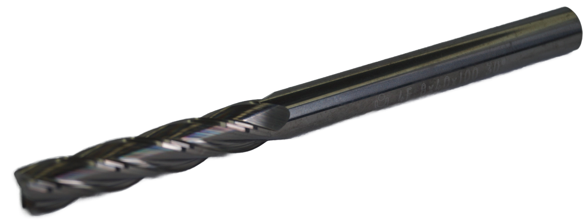 Твердосплавная концевая фреза 8 мм с удлиненной рабочей частью (40 мм) для эффективной обработки стали. Угол наклона спирали 30° обеспечивает стабильность и долгий ресурс инструмента на станках с ЧПУ.