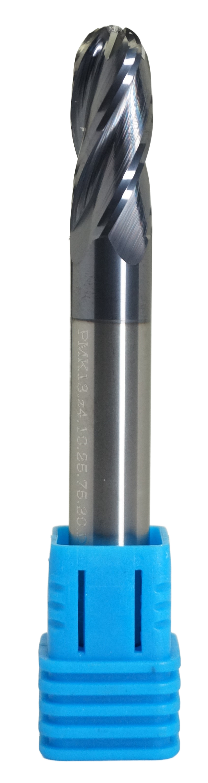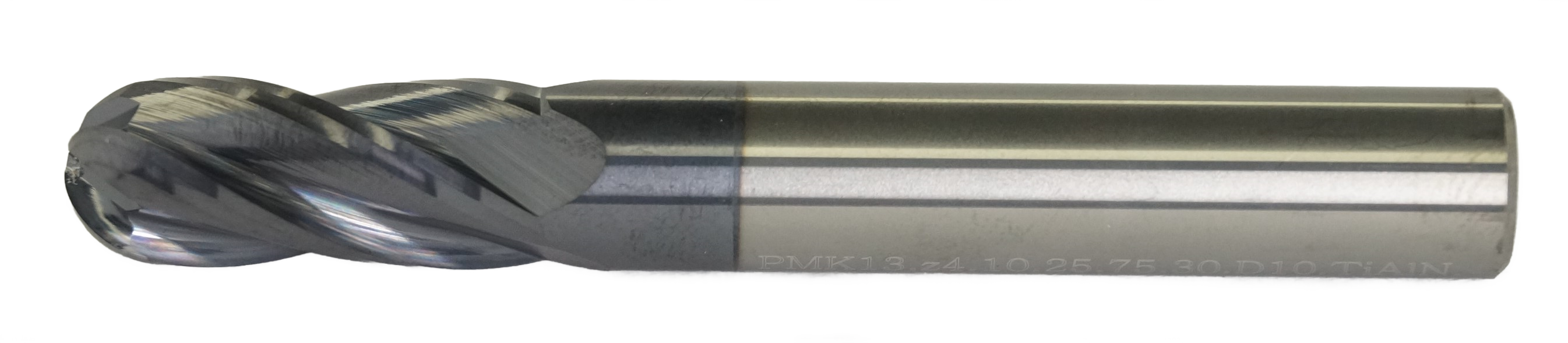 Твердосплавная сферическая фреза CNCINS 10 мм (Z4) серии PMK13 для ЧПУ. Рабочая длина 25 мм, общая 75 мм. Предназначена для 3D-обработки стали, нержавейки и чугуна.